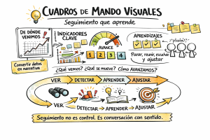 Un buen Cuadro de Mando Visual permite ver el avance real, detectar bloqueos, entender qué está pasando en el sistema y ajustar sin dramatismo. No para señalar errores, sino para aprender del recorrido.