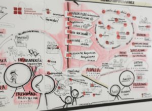El dibujo se convierte en una conversación visual: palabras clave, iconos, contenedores, jerarquías, decisiones. Y, en algunos momentos, si así se considera, se puede abrir el trazo al grupo, microvotaciones, post-its visuales, símbolos compartidos, para activar la apropiación colectiva.